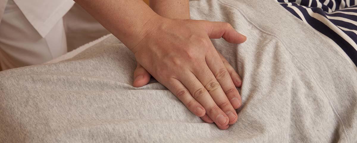 患部の施術をした後、周辺・全身(腹部)の施術をして血液循環を促進させ、自然治癒力を高めます。